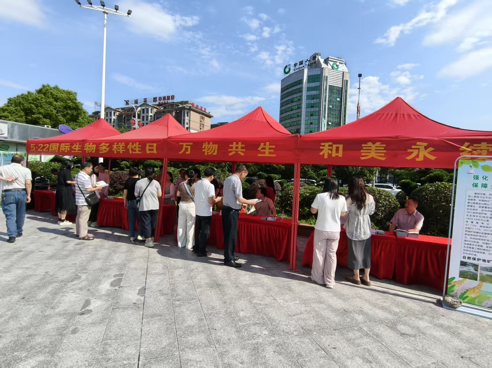 5月21日上午,衡陽(yáng)市生態(tài)環(huán)境局聯(lián)合市林業(yè)局、市農業(yè)農村局、市環(huán)境科學(xué)學(xué)會(huì )、高新管委會(huì )在高新開(kāi)發(fā)區步步高廣場(chǎng)開(kāi)展第25個(gè)5.22國際生物多樣性日宣傳活動(dòng)。今年國際生物多樣性日主題為"萬(wàn)物共生 和美永續",旨在呼吁社會(huì )各界以人與自然和諧共生之道,創(chuàng )和美永續之路。