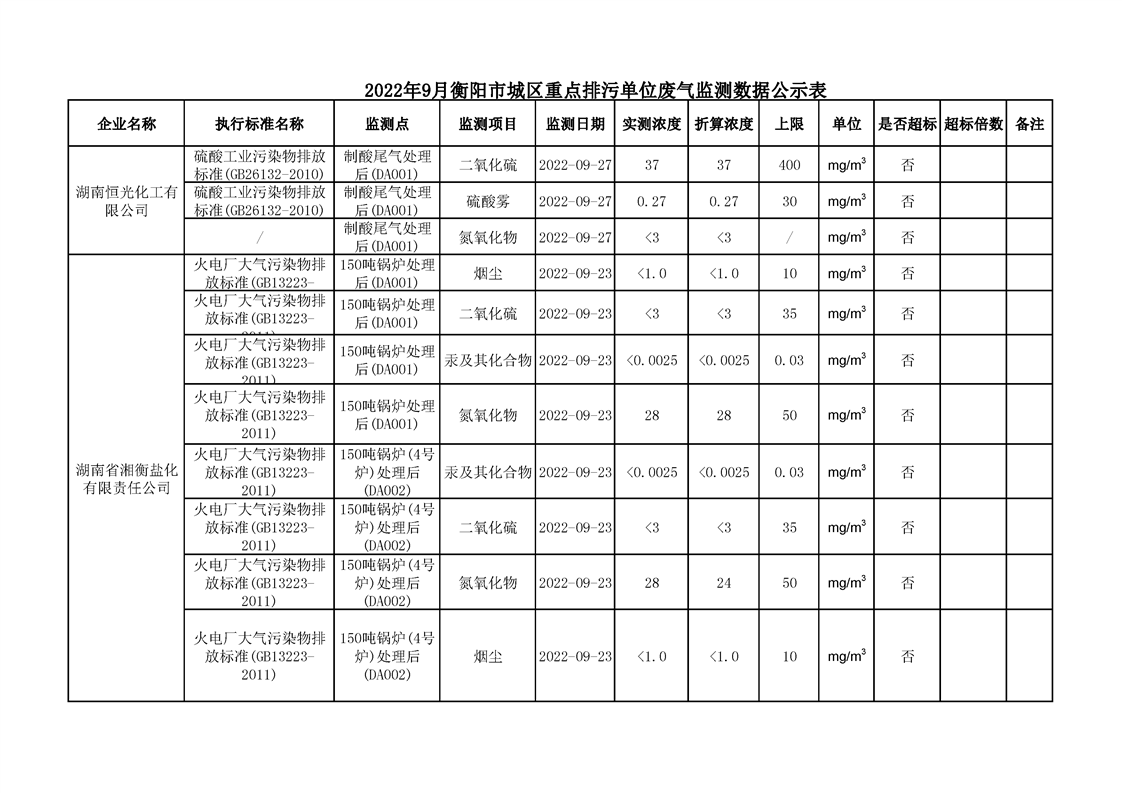 2022年9月市城區(qū)重點(diǎn)排污單位廢氣執(zhí)法監(jiān)測(cè)數(shù)據(jù)公示表