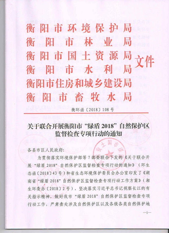 關(guān)于聯(lián)合開(kāi)展衡陽(yáng)市“綠盾2018”自然保護區監督檢查專(zhuān)項行動(dòng)的通知