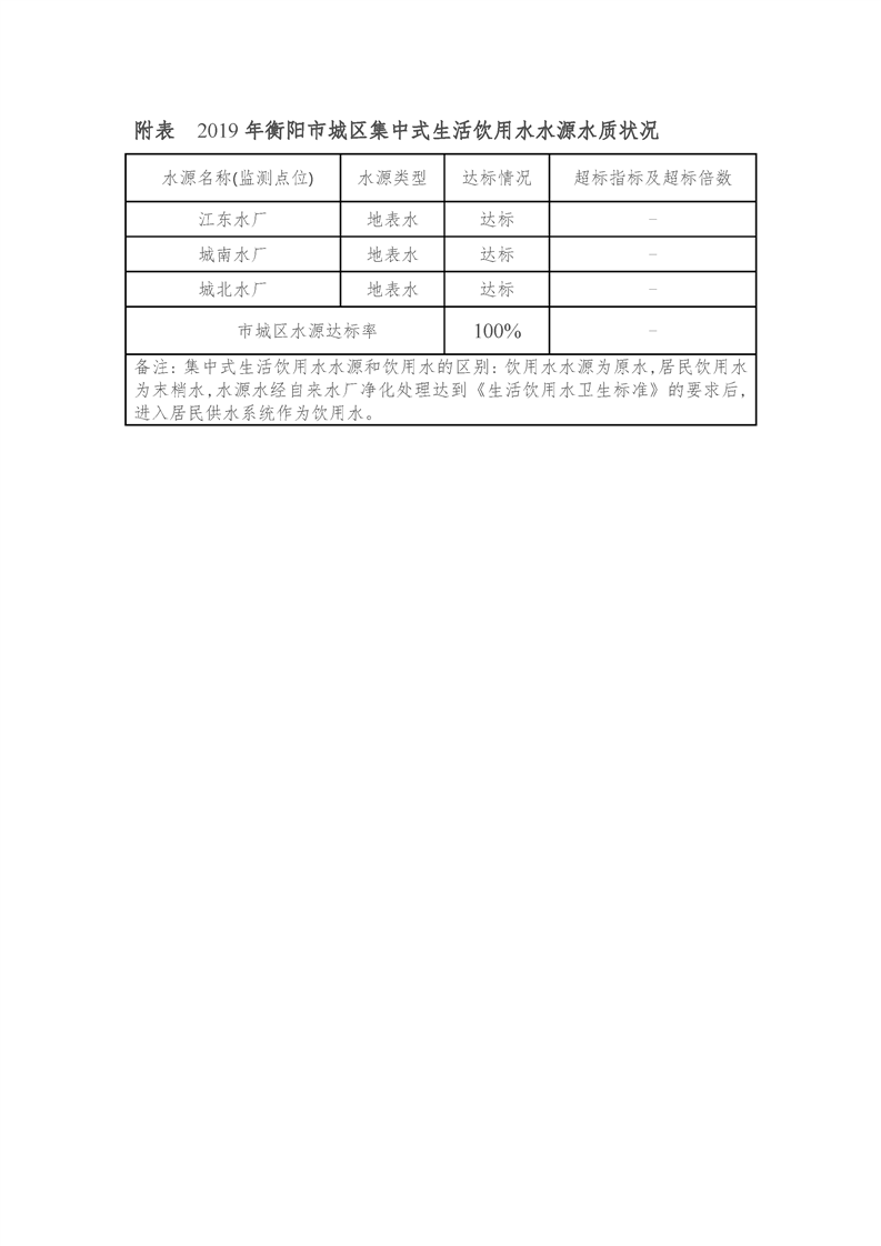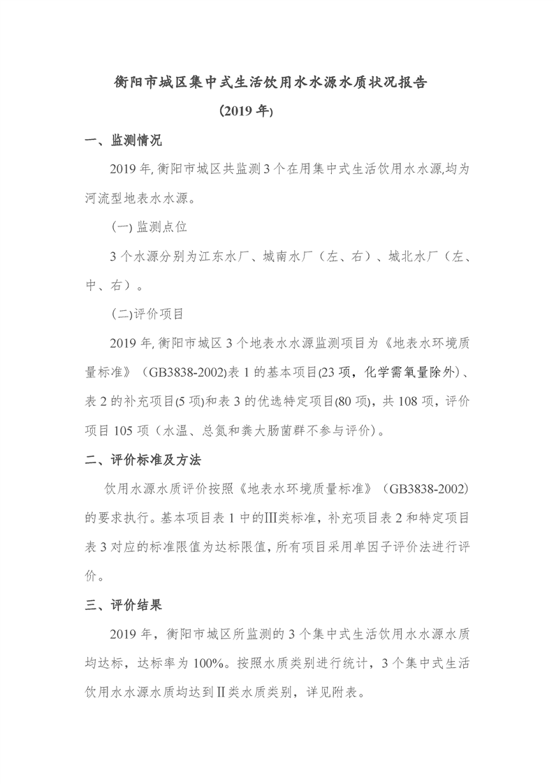 衡陽市城區(qū)集中式生活飲用水水源水質(zhì)狀況報(bào)告(2019年)